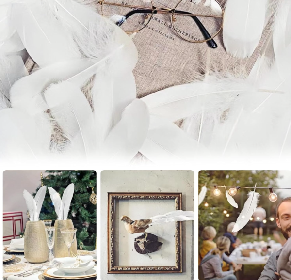 Plumas Naturales Blancas pack de 50 unidades tamaños surtidos cantidad
